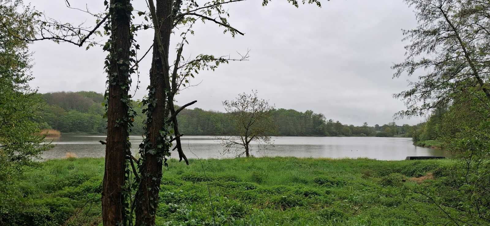 Équipé d’un banc — oui, un vrai banc — il nous a offert un moment de répit face à un vaste étang peuplé de poules d’eau, canards et autres observateurs à plumes visiblement amusés par notre équipée.