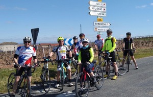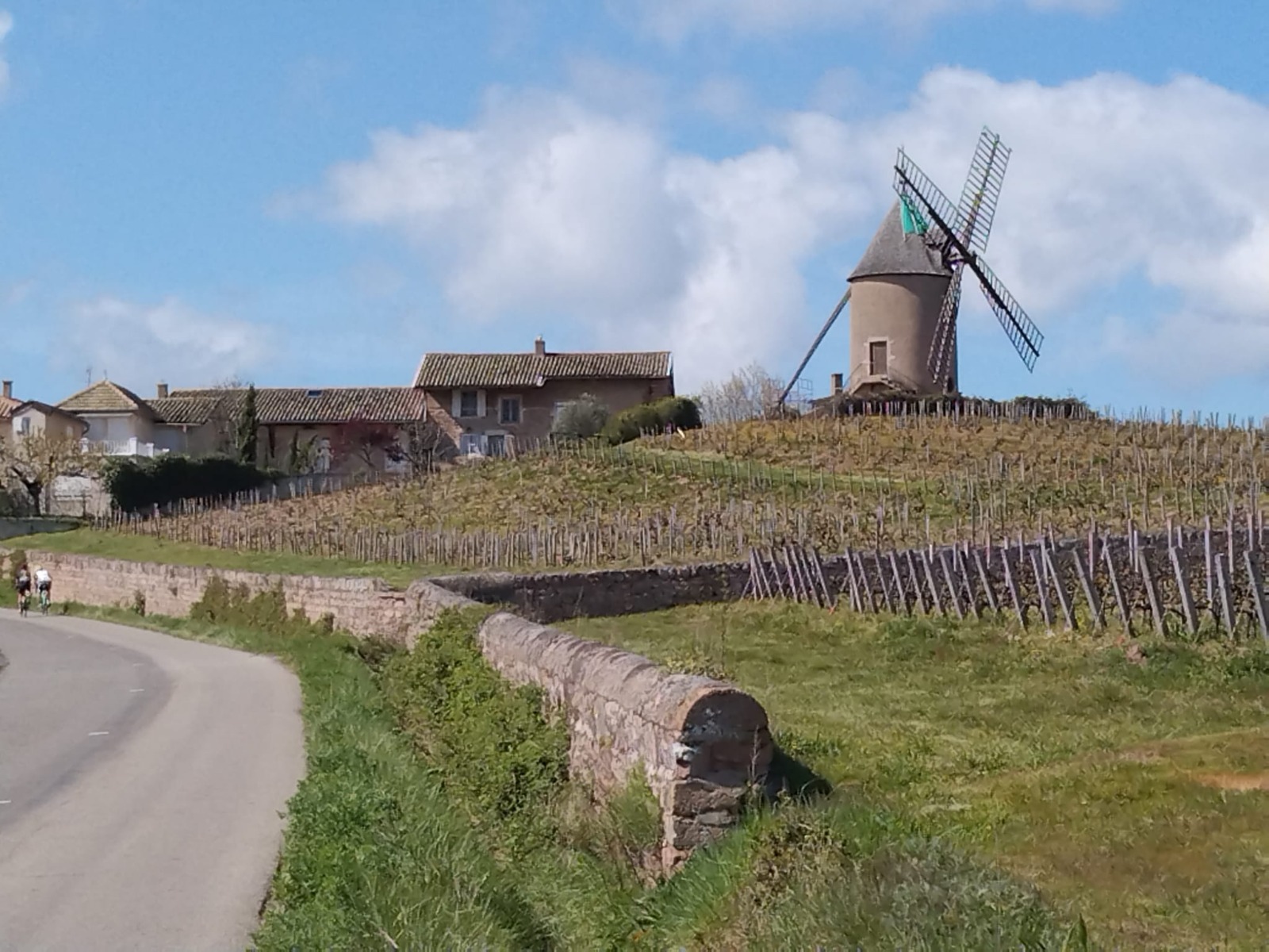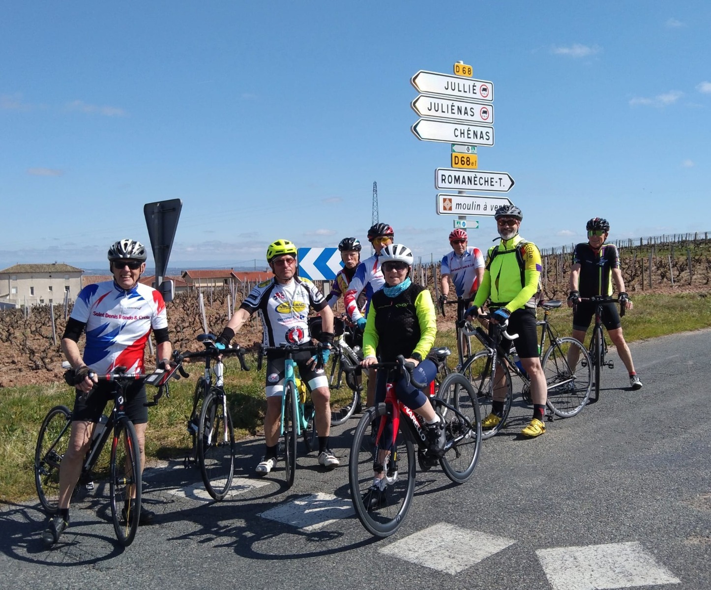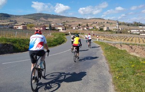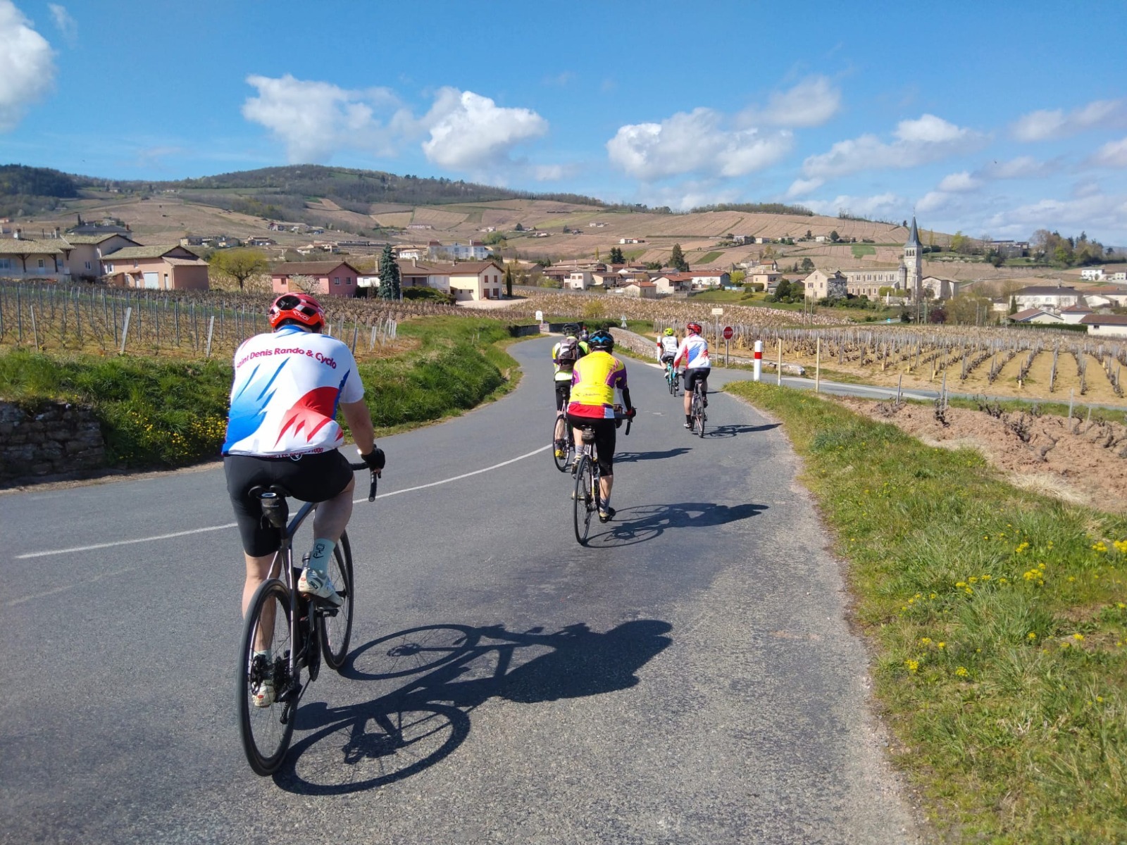 Reporté d'une semaine à cause du mauvais temps, c'est avec le brouillard que nous partons de St Denis ce samedi 4 avril à 13 heures pour le 1er 100 kms et nous trouvons le soleil rapidement pour découvrir cette région du Beaujolais, direction Vonnas, Thoissey, le passage de la Saône à St Romain des îles pour arriver dans le vignoble du moulin à vent et de Juliénas, retour par le pont d'Arcias, Pont de Veyle et Mézériat pour être de retour à St Denis en fin d'après-midi.